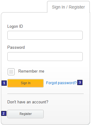 If a Buyer Administrator signs in, the Sign In/Register panel contains more fields to support the Buy-on-behalf-of feature. See Buy-on-behalf-of flows.