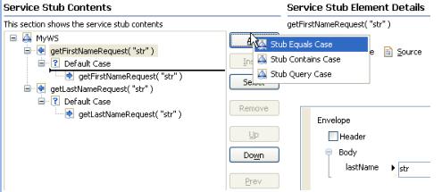 - Expand the operation and the Case : Default element, and then select the response element. The Case : Default element describes the response of the service stub when no other case condition is met.
