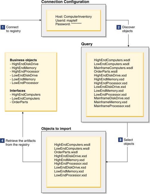 Artifacts such as interfaces and business objects can be imported from an IBM WebSphere Service Registry and Repository (WSRR).- Importing artifacts from a Universal Description Discovery and Integration registry