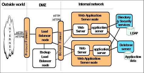 Figure 3-9 depicts a simple horizontal scaling configuration that uses an IP sprayer on the load balancer node to distribute requests among appservers on multiple machines.