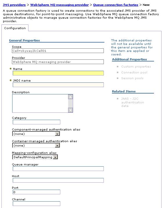 A WebSphere MQ queue connection factory is used to create JMS connections to queues provided by WebSphere MQ for point-to-point messaging. To view this page, use the console to complete the following steps: