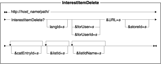 http://host_name/webapp/wcs/stores/servlet/InterestItemDelete? URL=/webapp/commerce/InterestItemDisplay&catEntryId=3&catEntryId=17