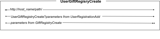 The UserGiftRegistryCreate action calls UserRegistrationAdd and GiftRegistryCreate. Refer to the parameter values for UserRegistrationAdd and GiftRegistryCreate for details.