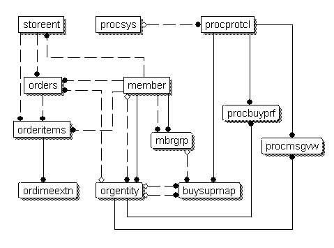 The Procurement data model shows the relationship between database tables that contain information about procurements.