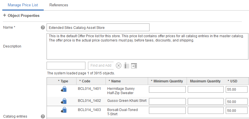 A price list is a list of catalog entries with associated prices in one or more currencies. WebSphere Commerce uses price lists in price rules to set prices for catalog entries on the storefront. When you manage your price lists with the Catalog Filter and Pricing tool in Management Center, we can take advantage of many features to implement flexible pricing and simplify maintenance.