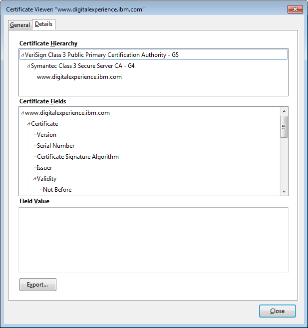 -----BEGIN CERTIFICATE----- VeriSignClass3PublicPrimaryCertificationAuthority-G5_certificate -----END CERTIFICATE----- -----BEGIN CERTIFICATE----- SymantecClass3SecureServerCA-G4_certificate -----END CERTIFICATE----- -----BEGIN CERTIFICATE----- wwwdigitalexperienceibmcom_certificate -----END CERTIFICATE-----