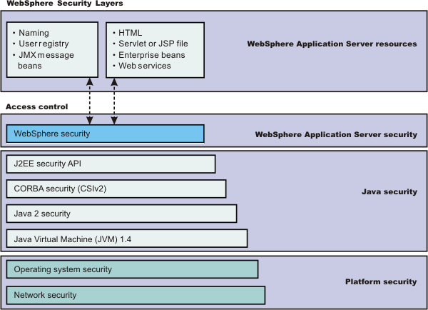 WebSphere Application Server security is built on a layered security architecture as showed in the following figure. This section also examines the security