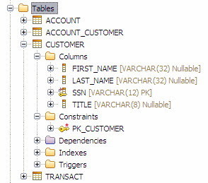 Expand Columns. All the columns in table CUSTOMER are listed. SSN is marked as primary key.