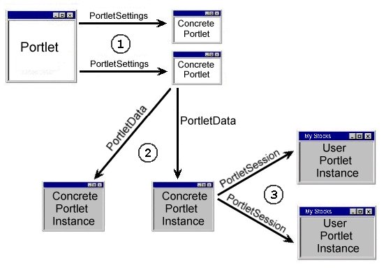 - The portlet is placed on a page by a user or an administrator. This creates a concrete portlet instance, which is a concrete portlet parameterized by a single PortletData object.
