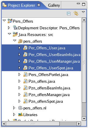 Use the Project Explorer of IBM Rational Application Developer to create the user resource classes and content spot for the Personalization demo that creates the Personalized Offers portlet for different customer profiles.