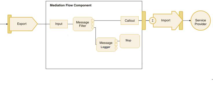 In Figure 4, the fail terminal of the Message Filter mediation primitive is wired to a Message Logger, so that the failed messages can be stored. To indicate that no more actions are needed, the Message Logger is wired to a Stop mediation primitive.