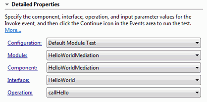 The component HelloWorldMediation calls an external web service, which takes a string input and returns the concatenated string. To test the operation callHello independently of the web service, you can use an emulate event.