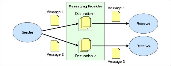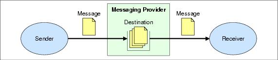 With asynchronous messaging, however, we need to introduce the concept of a destination. The need for a destination becomes apparent when we consider the fact that a single messaging provider can act as an intermediary for many applications. In this situation, the sending and receiving applications must agree on a single destination used to exchange messages. This destination must be specified when sending a message to the messaging provider, or receiving a message from the messaging provider.