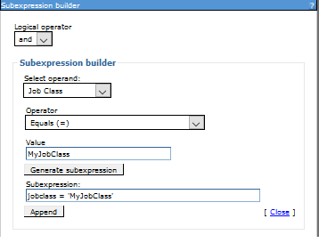 System administration > Job Scheduler > Classification rules > Add Rule > Subexpression builder.
