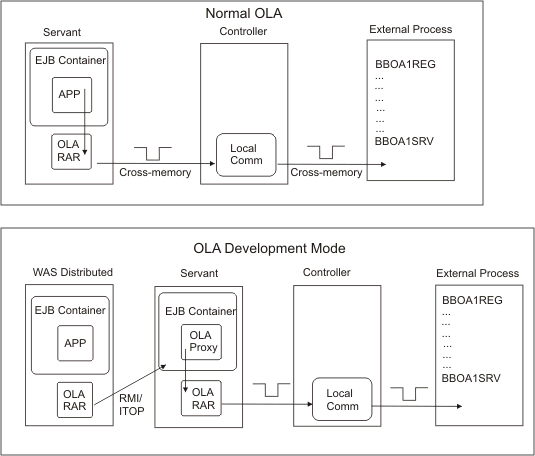 WebSphere Optimized Local Adapter (WOLA) remote work request on an Enterprise Java Bean target Configure optimized local adapters in development mode on the remote z/OS node Configure optimized local adapters in development mode on the local node