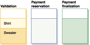 In this example, there are two releases for the order: one for the sweater and another for the shirt. The payment reservation glass might not contain the same amount as the validation glass. If the release for the sweater is released to fulfillment, the payment reservation glass contains 60 U.S. dollars, but if inventory for the shirts arrives earlier than expected, the two items can be released together and the payment reservation glass now contains 100 U.S. dollars. The payment amounts associated with release to fulfillment are now different from what was originally in the order capture glass (60 U.S. dollars plus 40 U.S. dollars).