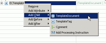 - Right-click the ECTemplate node and select Add Child > TemplateDocument.