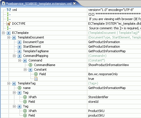 - Open the webservice_SOABOD_template.extension.xml file in the XML Editor. By default, the webservice_SOABOD_template.extension.xml file is found in...WCDE_installdir/xml/messaging