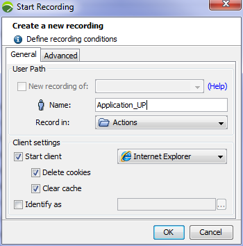 - In the project, click Start Recording. In the Recording dialog box, enter the name of the User Path and specify the conditions of the browsing sequence you are about to capture.