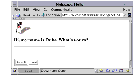 <h3>Hi, my name is Duke. What's yours?</h3>To update the file: